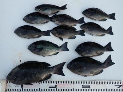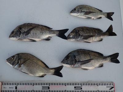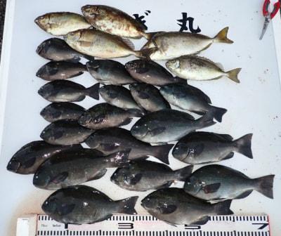 グレ | 25.5〜33cm | 9匹 | フカセ釣り ウキ下1ヒロ ハリス1.7号 針・グレ5.5号 | オキアミ |