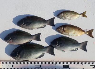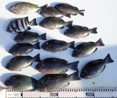 グレ | 29.5〜35cm | 4匹 | フカセ釣り ウキ下1ヒロ ハリス1.75号 針・グレ5号 | オキアミ |