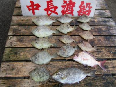 カワハギ | 15〜22cm | 13匹 | 胴付き仕掛け | シラサエビ |