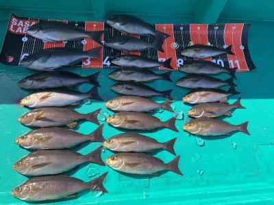 | イサキフカセ試し釣り 食いがあまり良くないが、脂ノリノリのイサキ 30〜38cm 19匹 他尾長グレ1匹、口太3匹でした。 |