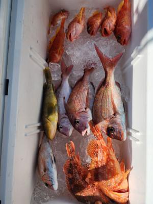 | タイラバ、ジキングで出船。鯛35〜40cm 8枚、ジキングでは、6.4キロホウキハタ等でした。 |