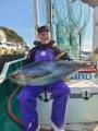 | キハダフカセに出船。キハダマグロ42キロ、60キロ2本でした。 |