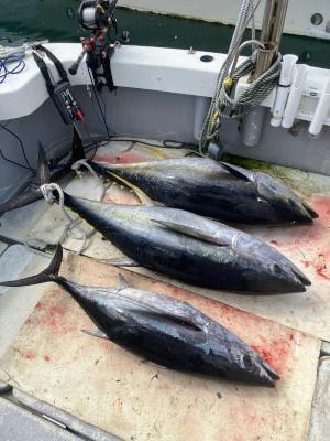 キハダマグロ46.6キロ 量ってないの1本 ビンチョウマグロ23.2キロ |