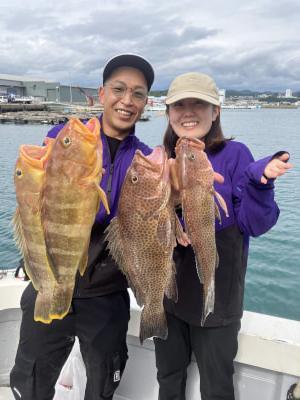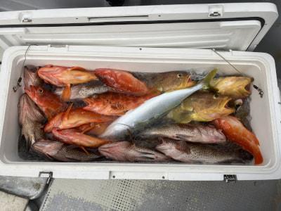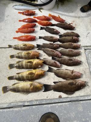 | オオモンハタ52センチ〜13匹 アオハタ45p〜5匹 アカハタ8匹 アカハタはほとんどリリース(小さい) |