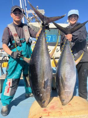 キハダマグロ | 34.1〜54Kg | 2匹 | 完全ふかせ | 冷凍イワシ |