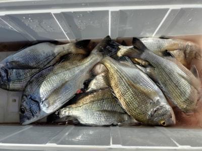 チヌ | 25〜34cm | 15匹 | ハリス1.5号 針3号 オモリ3B 竿1.8m | サナギ ネリエ |