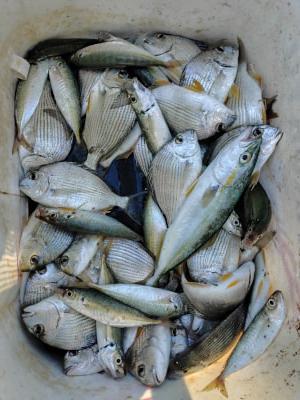 チヌ | 20〜27cm | 15匹 | ハリス1.5号 針3号 オモリ3B 竿1.5m | オキアミ |