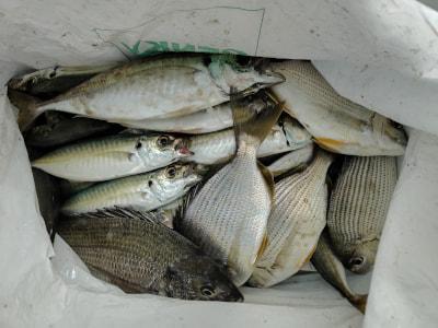 アジ | 18〜24cm | 44匹 | ハリス1.5号 針3号 オモリ3B 竿1.5m | オキアミ |