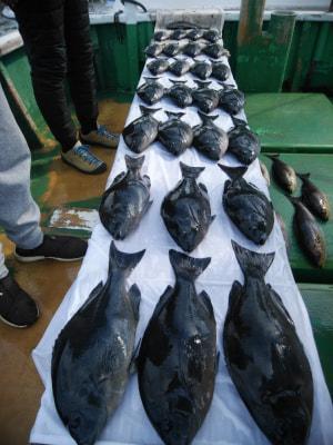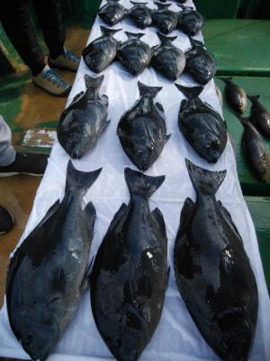 台の上いっぱいに釣れました!! 山口会長様 前之園先生 |