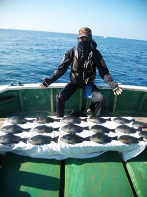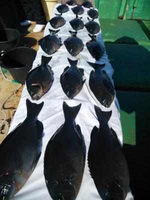 | 磯釣りスタイルのフカセ釣り。白浜沖でグレ釣りするなら大瀬丸へ。午前便の釣行でした。北東の風で下り潮でした。岡入れの潮で風と潮とが反対でしたが、中西様よく頑張ってくれて寒グレ39cmを頭に17枚の大釣りで大変喜んでくれて良かったです。ありがとうございました。またお願いします。 |