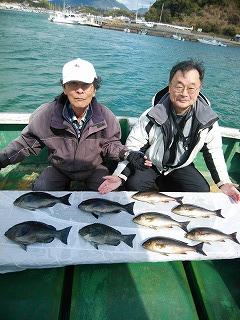 上り潮で良型イサギ、5匹釣れました ! ! |
