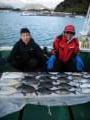 | 白浜沖でグレ釣りするなら大瀬丸へ。磯釣りスタイルのフカセ釣り。午後便の鴨居港出船です。北の風で下り潮でした。喰い活発でお客様よく頑張ってくれてグレ38cm頭に30枚の大釣りで大変喜んでくれてよかったです。ありがとうございました。またお願いします。 |