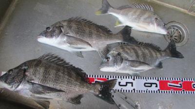 チヌ | 38〜43cm | 4匹 | 竿1.5mハリス2.5号針チヌ5号 | カキむき身 |
