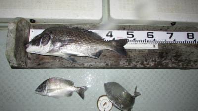 チヌ | 28〜47cm | 3匹 | 竿1.5mハリス2.5号針チヌ5号 | サナギとコーン |