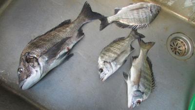 チヌ | 25〜42cm | 4匹 | 竿1.5mハリス1.5号針チヌ4号 | サナギ |