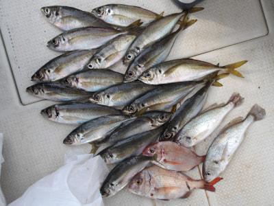 マアジ | 25〜35cm | 15匹 | 胴付き3本針 | 青虫・オキアミ |