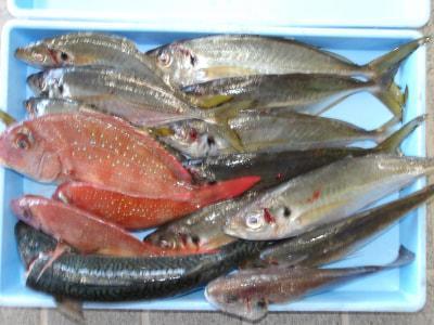 マアジ | 25〜35cm | 11匹 | 胴付き3本針 | 青虫・オキアミ |