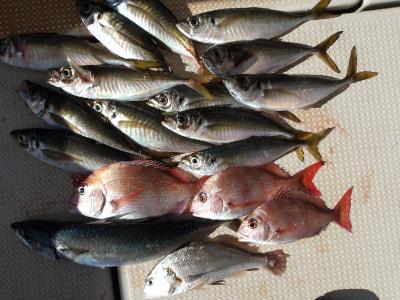 マアジ | 25〜35cm | 13匹 | 胴付き3本針 | 青虫・オキアミ |
