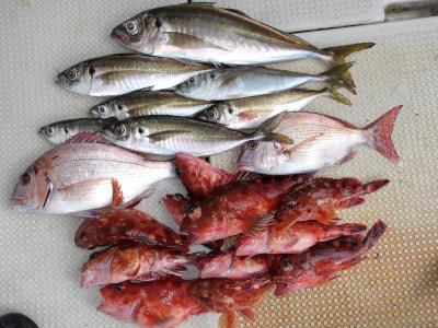 マアジ | 25〜45cm | 7匹 | 胴付き3本針 | 青虫・オキアミ |