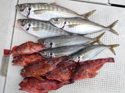 マアジ | 27〜40cm | 0匹 | 胴付き3本針 | 青虫・オキアミ |