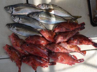 マアジ | 35cm | 5匹 | 胴付き3本針 | 青虫・オキアミ |
