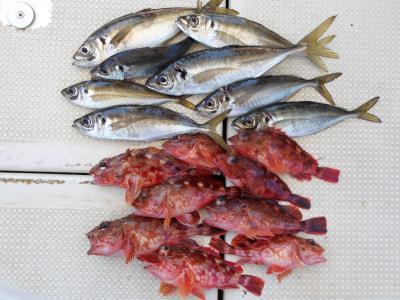 マアジ | 27〜35cm | 8匹 | 胴付き3本針 | 青虫・オキアミ |