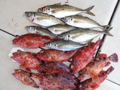 マアジ | 25〜35cm | 7匹 | 胴付き3本針 | 青虫・オキアミ |