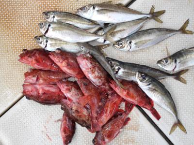 マアジ | 27〜30cm | 10匹 | 胴付き3本針 | 青虫・オキアミ |