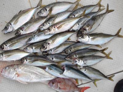 マアジ | 25〜30cm | 21匹 | 胴付き3本針 | 青虫・オキアミ |
