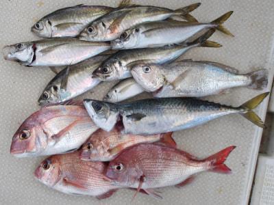 マアジ | 20〜30cm | 7匹 | 胴付き3本針 | 青虫・オキアミ |