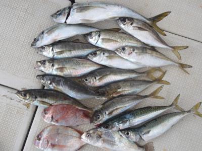 マアジ | 25〜45cm | 13匹 | 胴付き3本針 | 青虫・オキアミ |