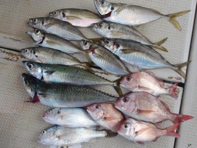 マアジ | 25〜40cm | 8匹 | 胴付き3本針 | 青虫・オキアミ |