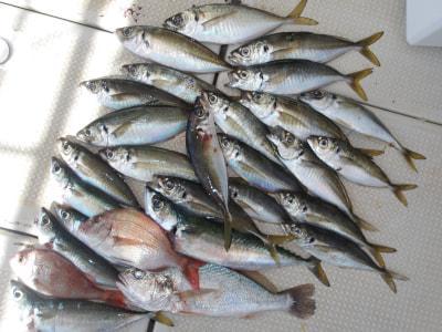 マアジ | 20〜30cm | 24匹 | 胴付き3本針 | 青虫・オキアミ |