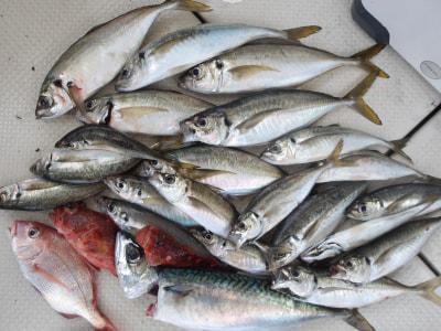 マアジ | 25〜40cm | 22匹 | 胴付き3本針 | 青虫・オキアミ |