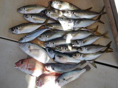 マアジ | 25〜30cm | 17匹 | 胴付き3本針 | 青虫・オキアミ |
