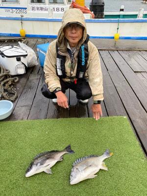 筏●チヌ、キビレ | 42cm | 2匹 | ハリス1.5 針3 錘2B | 沖アミ |