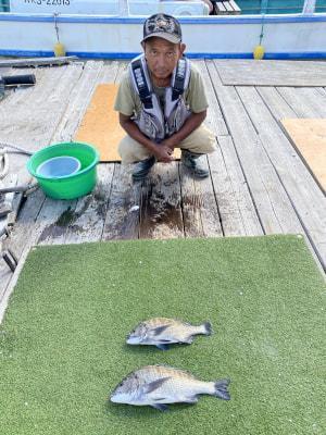 筏●チヌ | 34〜42cm | 2匹 | ハリス2 針3 錘なし | コーン、サナギ |