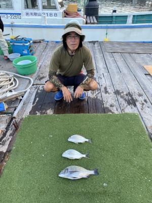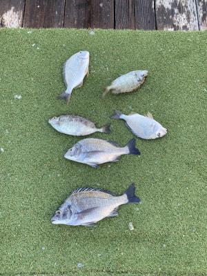 チヌ | 32〜35cm | 2匹 | ハリス1.5 針4 錘なし | 沖アミ、サナギ | |