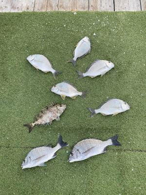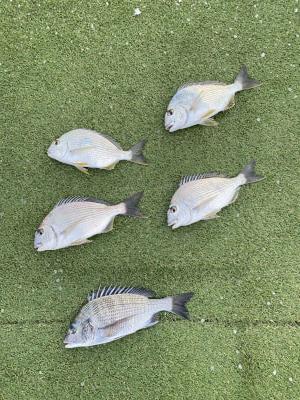 チヌ | 30〜34cm | 2匹 | ハリス1.5 針4 錘なし | サナギ | |