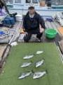 | 数日ぶりに出船しました。今日は午前中は寒く風も有り厳しい釣りでした午後からお天気回復しいいお天気になりました。エサ取り少なくなっています。ちなみに今日釣られたお客様アミエビ1k、オキアミ3kいつも入れてるそうです。 |
