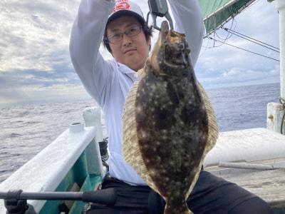 落とし込みで出ました・・・ヒラメを仕留めてくれました!!・・・ベイトはイワシです!! |