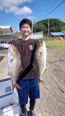落とし込みでカンパチ狙いに出船しました。何とかお土産になりました。食い悪いのかよくバレました。台風の影響が多少出ると思いますので 明日、明後日のお客様 連絡させて頂きます。 |