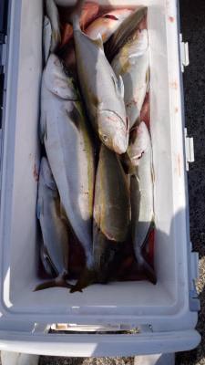 | 落とし込みに出船‼️今日もまずまずの釣果でした。お一人様カンパチ2〜5本の釣果でした。メジロ、ハマチも混ぜりお土産になりました。連日出船しています。 |