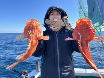 | 第二西漁丸!1/4(日) オニカサゴ便✨ 前半は潮ベタ止まりで魚っけなし😅 後半少し下り潮に動き出して当たり始めました✨ 大きいのも釣れてます♪ ありがとうございました^ ^ |