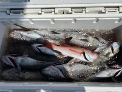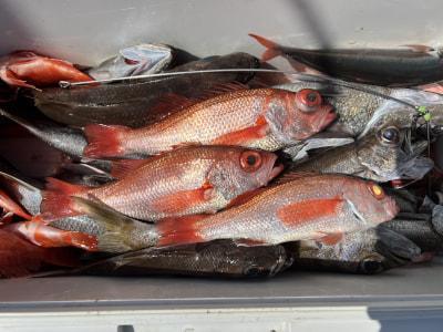 | ジャンボクロムツ&アカムツ便✨ 今日は一名様でした。 潮は少し緩み釣りやすかったです♪ ムツの活性は高かったように思います。 アカムツは厳しかったですが、うまく誘っていただき、腹黒38aを含めて3匹釣ってくれました^ ^ |
