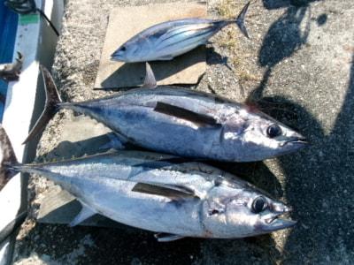 ビンチョウマグロ | 20〜25Kg | 3匹 | フカセ釣り | イワシ |