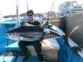 | キハダマグロ30キロ1尾。ビンチョウマグロ1尾でした。串本港から出船しています。5時出船です。 |