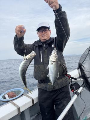 マアジ〜ジャンボマアジ | 37〜48cm | 32匹 | 竿釣り、イサギマアジ仕掛け3.5号3本針、鉄仮面120 | アミエビ |