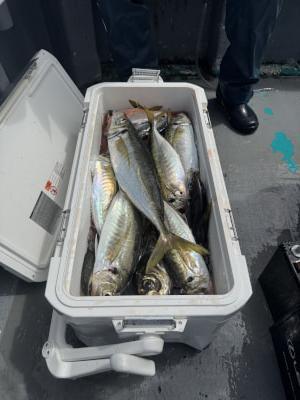 | マアジ〜ジャンボマアジ釣りに出船🐟 今日もソウダカツオ少なくマアジ〜ジャンボマアジ活性良く皆様お土産になりました! |