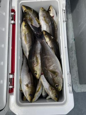 イサギ | 27〜38cm | 38匹 | 竿釣り、イサギ仕掛け3.5号3本針、鉄仮面120 | アミエビ |